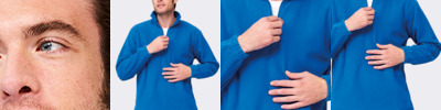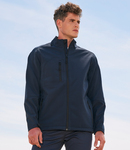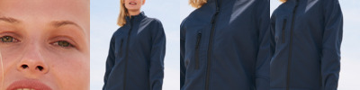 Three layer soft shell. 94% polyester/6% elastane outer. Polyester fleece backed. Mesh lined front panels. Showerproof, windproof and breathable. Shaped fit. Taped neck. Collar high full length zip with chin guard and inner zip guard. Right chest zip pocket. Two front zip pockets. Tear release adjustable cuffs. Adjustable drawcord hem. Drop hem. Access for decoration.