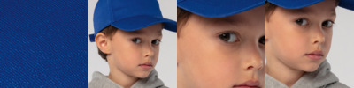 100% light brushed cotton. 5 panel. Four ventilation eyelets. Contrast sandwich peak on certain colours. Tear release size adjuster.
