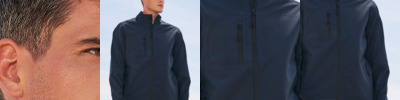 Three layer soft shell. 94% polyester/6% elastane outer. Polyester fleece backed. Mesh lined front panels. Showerproof, windproof and breathable. Taped neck. Collar high full length zip with chin guard and inner zip guard. Right chest zip pocket. Two front zip pockets. Tear release adjustable cuffs. Drawcord hem. Drop hem. Access for decoration.