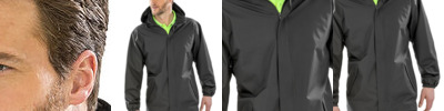 Water resistant garment; PU coated with critically taped seams, fabric is waterproof to 2000mm and breathable: 2000g/m2 per 24 hours. Active fit: articulated elbows, raglan sleeves and concealed hood with advanced features include a zipped handwarmer pockets with internal pocket for phone/MP3; storm flap with rain channel; reversed zips and soft touch inner collar. Concealed 3 piece hood, fully lined with discreet concealed decoration access at hem. Also available in kids'