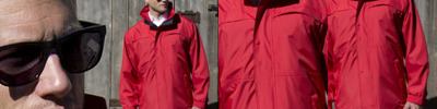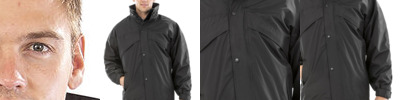 Ripstop waterproof (2,000mm). Windproof. Foldaway shadow printed lined hood with shockcord adjusters. Stud closing stormflap. Full front zip fastening. 2 mesh lined zip closing side pockets. Tear release adjustable cuffs. Adjustable shockcord hem. Decorative reflecting piping around lower body. Fully Taped waterproof Seams. Concealed access for print and embroidery. Also available in kids'
