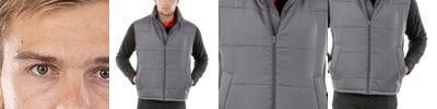 Slightly padded deep collar, channel quilted outer, deep cut arm hole for added comfort. Concealed mobile phone pocket with velcro fastening, fashionable shaped drop back. Deep cut patch pockets, inside chest pocket. Result zip pull. Concealed access for print and embroidery.