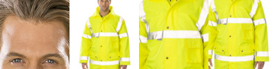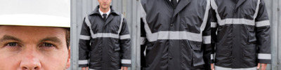 Safety jacket with 3M reflective silver 5cm bands. Concealed hood, inside pocket, pockets with flaps and stud fastenings, mobile phone pocket, fully taped waterproof seams. Conforms to 89/686/EEC directive. Concealed access for print and embroidery.