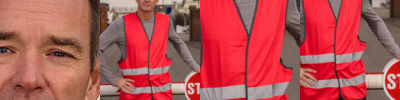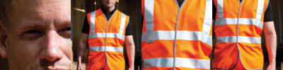 Tear release front fastening, grey polyester bound edges. 3M retro reflective safety tapes. Conforms to 89/686/EEC directive. Generous in size. EN471 specification, Class 1 approved.