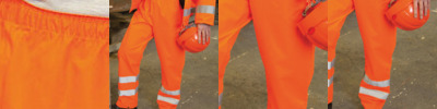 Waterproof, windproof. Conforms to 89/686/EEC directive. Taped seams, no outside leg seam. 2 side access pockets and 1 back key pocket. Elasticated waist with drawcord adjuster. Stud closing ankle adjusters. 50mm sewn on safety tapes incorporating 3M™ Scotchlite™ reflective materials.