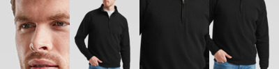 High neck with YKK metal zip. Turtle neck collar with single jersey back neck tape. Covered zip for enhanced printability. Ribbed hem and cuffs, twin-needle stitching detail on neck and armholes. Shape retention.