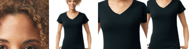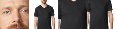 Deluxe 30’s soft style yarns. Non-topstitched ½” rib knit collar. Taped neck and shoulders. Mitred V-neck pattern. Side seam construction with stylish tapered fit. Twin needle sleeve and bottom hems. Quarter-turned to eliminate centre crease.