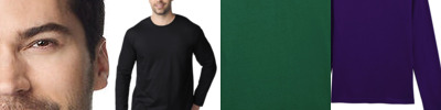 Air jet spun yarn equals softer feel and no pill. Double needle stitching. Set in sleeves. 1x1 athletic rib with Lycra®. Quarter-turned body to eliminate centre crease.