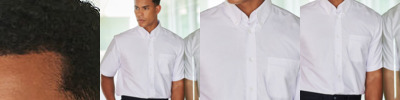 65% Polyester, 35% Cotton. Contrast side and sleeve panels, contrast piping, half moon yoke. Contrast back neck tape, side vents with contrast herringbone tape. Spare button.