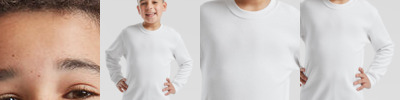 Comfortable seamless cotton/Lycra® rib crew neck. Ribbed hem and cuffs. Twin needle stitching detail on armholes and neck. Generous full cut with tubular construction for shape retention. Also available in adults Age Chest (to fit) 3/4- 26" 5/6- 28" 7/8- 30" 9/11- 32" 12/13- 34" 14/15*- 36" *Size 14/15 is VATable.