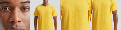 Finer knit gauge for enhanced printability. Produced Belcoro® yarn for a softer feel and cleaner printing process. One piece cotton/Lycra® neck for improved shape retention. Shoulder to shoulder taping. Twin needle stitching detail on neck, sleeves and hem.