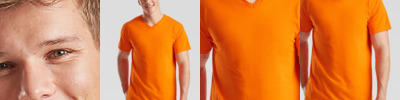 High v-neck. Twin needle stitching detail on sleeves and hem, shape retention. Produced using Belcoro® yarn for a softer feel and cleaner printing process. Cotton/Lycra® rib V neck.