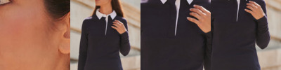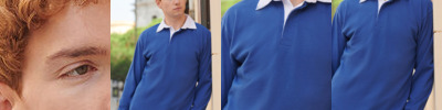 Taped neckline. 3 button fused placket, selfcoloured buttons. Reinforced shoulder seams with single needle stitching. Ribbed flat-knit collar and cuffs.