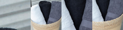 Hardwearing, soft on the skin. Excellent absorbency qualities. Heringbone border. Hanging loop. Sizes 70 x 130 cm