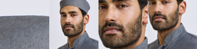 One size fits all. Flat top chef's skull cap. Elasticated back, crease resistant finish. Industrial laundry 85°C, domestic wash 60°C. Size One Size