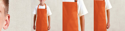 Classic Premier children's bib apron available in 12 colours. Self fabric neckband. Self fabric ties 50cm long. Width: Infant 43cm, Junior 48cm. Length: Infant 53cm, Junior 63cm. Made from Oeko-Tex® Standard 100 fabric. These aprons have an adjustable nec