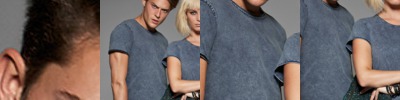 The infinite short-sleeved t-shirt in single jersey in indigo dye with denim effect. Crew neck 1x1 rib collar. Set-in-sleeves. Folded cuffs with single needle topstitch. Necktape shoulder-to-shoulder, finished with double chain stitch for more elasticity. Bottom with blind stitching.