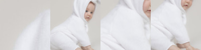 Hooded all-in-one in super-soft plush fabric with rabbit ears, eyes, and nose detailed on the hood. YKK zip down the centre front and down the leg. Tail detail on the back. Binding on sleeve and leg hems.