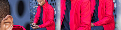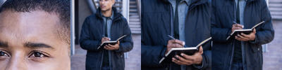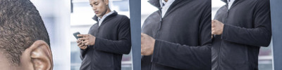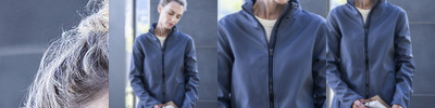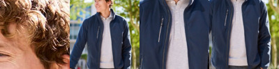 Warm-backed woven softshell with durable water-repellent finish. Fully printable fabric. Inner zip guard. 2 zipped lower pockets.