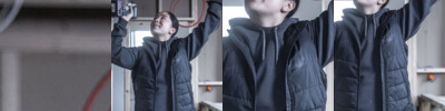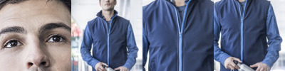 Warm-backed woven Softshell XPT waterproof and breathable 3-layer membrane fabric. Fully printable outer fabric. Wind-resistant membrane fabric. 2 zipped lower pockets and 1 zipped chest pocket.