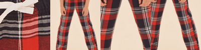 Woven tartan lounge pants with plain hem. Full elasticated waist with contrast mock drawcord. Tear-out label.