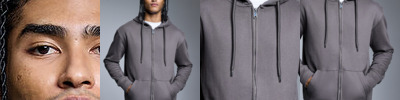 Shaped to fit. 320gsm. Peached fabric, soft-feel finish. Waffle knit hood. High polished, nickel free eyelets, zip and drawcord ends. Polyester dyed to match tubular drawcord. Concealed zip. Brushed fleece inner. Twin-needling detailing creates a high quality finish. Cut and sew two by one ribbed cuffs and hem. Kangaroo pouch pocket. Self-coloured neck size label.