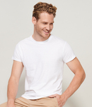 100% Organic cotton. Single Jersey. Ribbed collar. Taped neck. Side seams – non tubular body. Twin-needle detail at hem and sleeve. Set-in sleeves. Crewneck. Fashion fit. Size label only for easy rebranding.