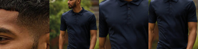 Recycled polyester fabric. Easy care. Antibacterial Finish. 3 button placket.