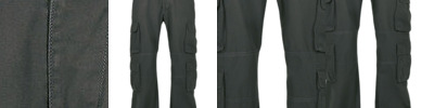 Classic cargo cut, heavy cotton quality, washed cotton, 2 sloping reach in pockets, drawstring.