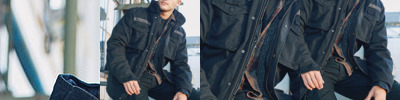 Premium field jacket, many vintage applications, removable lining, adjustable waist, hidden hood.