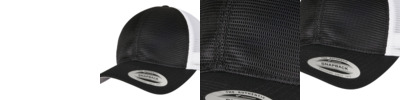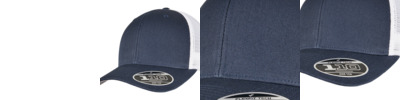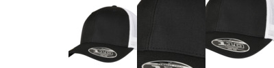 Two-toned trucker cap with adjustable, color-matching snapback closure, made of cotton and polyester, one size fits all, Flexfit 110 technology, 8-fold quilted, pre-bent visor.