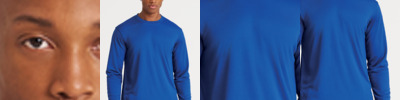 Stretch. Crew neck. Long sleeve. Lightweight. Twin-needle stitching on hem and arms. We recommend using block out vinyl and inks.Product contains no branded neck or waist label. Removable Kimble or looped garment tags. Inner seam label holds important product information on one label with a second label containing brand information which can be cut-away. UPF 40+.
