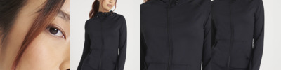 Hood and sleeves 92% polyester/8% elastane.DynamicCool™ responsive blended fabric.Contrast melange effect grown on adjustable hood and raglan sleeves.Taped neck.Full length zip.Front pouch pockets.Thumbholes on cuffs.Tear out label.