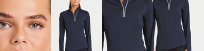 86% polyester/14% elastane. Cool-Flex™ four-way stretch fabric with quick dry, wicking properties. Active fit. Stand up collar. Reflective tab on back neck. Raglan sleeves. Zip neck with chin guard and reflective detail. Side panels. Bound cuffs with thumbholes. Twin needle hem. Tear out label.