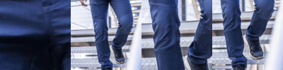 Woven stretch fabric with a DWR (Durable water-repellent) finish. Ripstop stretch fabric to knee, seat panels and re-enforcement at the hem. Part elasticated waist and high back waistband. Multi pocketed with front and rear zipped pockets.