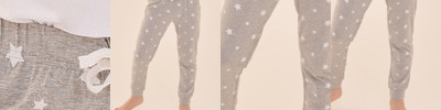 Stretch lounge pants with elasticated waistband and mock drawcord. Self-fabric cuffed hem. Tear-out label.