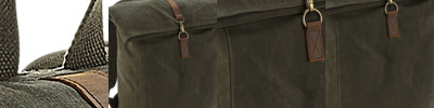 100% cotton canvas. Carry/shoulder straps (58cm long). Single large compartment. Capacity 21 litres.