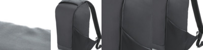 600D micro ripstop polyester. Padded adjustable shoulder straps. Ergonomic padded back panel. Main zip compartment. Internal valuables zip pocket. Internal organiser section. Plush lined laptop pocket. External access padded laptop compartment compatible up to 15.6". Elasticated cable organiser. Side zip pockets. Key clip. Lockable zip pullers. Tear out label. Capacity 16 litres.