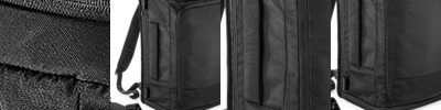 1000D twist weave polyester. Water and abrasion resistant fabric. HD polyester lining. High density seatbelt webbing. Grab handle. Innovative strap system converts from backpack to shoulder bag. Padded adjustable shoulder straps. Adjustable chest strap with clasp closure. Breathable padded mesh back panel. Main zip compartment. External secure padded laptop compartment compatible up to 15.6". Internal elastic bottle holder. Side zip pocket for bottle/umbrella. Easy access side pockets. Tear out label. Capacity 28 litres.