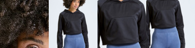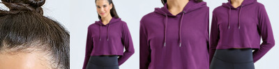 Cropped hooded t-shirt. Long sleeve. Drawcords dyed to match with gunmetal eyelets and drawcord caps. Double layer hood. Soft-feel. We recommend using block out vinyl and inks.Product contains no branded neck or waist label. Removable Kimble or looped garment tags. Inner seam label holds important product information on one label with a second label containing brand information which can be cut-away.