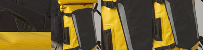 Secure roll-top and clip closure system. Waterproof Zip. Dual sided EasyPanel™ for decoration. TearAway adhesive fabric label. EasyPanel™ for decoration. Innovative, tough durable design. Compression straps. Enhanced visibility reflective accents. External mesh pocket. Ergonomic breathable padded mesh back panel. Padded adjustable mesh shoulder straps. Grab handle.