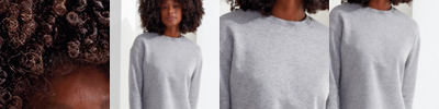 Soft hand feel. Ribbed crew neck. Brushed inner fleece. Twin-needle detail. Cut-and-sew 2x1 ribbed cuffs and hem. Self-coloured neck size label. Relaxed fit.