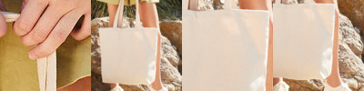 Contains 100% certified organic cotton. Premium, heavyweight fabric. Soft cotton, striped webbing handles. Can be carried by hand or over the shoulder.