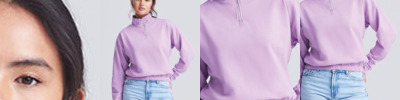 Women's regular fit. Funnel Neck. Quarter zip fastening. Cropped style. Elasticated hem. Brushed Inner fleece. Ribbed cuffs. Soft cotton faced fabric creates ideal printing surface. Simple tear out label makes it perfect for rebranding.