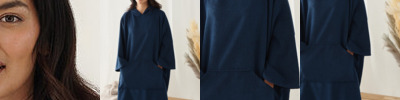 Adults poncho style. 3-piece hood. Front kangaroo pocket with phone pocket. Set-in sleeves. Side vents for ease of movement.