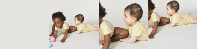 Short sleeve baby bodysuit. Set-in sleeve. 1x1 rib binding at neck collar and leg opening. Snap placket at shoulder. Snap closure at bottom.