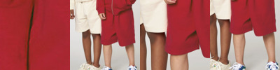 Kids jogger shorts. Self-fabric elastic waistband and round drawcords in matching body colour with metal tipping. Embroidered eyelets. Pockets at front. Patch pocket at back. Bottom hem with wide double-needle topstitch.