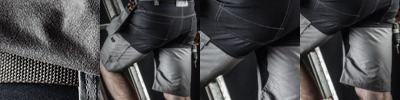 - (Shell) 100% Polyester Mechanical Stretch bonded with 100% Polyester Single Jersey, 240gsm; (Liner) 100% Nylon, 40gsm