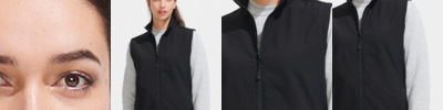 Two layer stretch soft shell. 96% polyester/4% elastane outer. Polyester fleece lining. Showerproof. Collar high full length black zip. Two front zip pockets. Open hem. Curved drop hem. Tear out label.