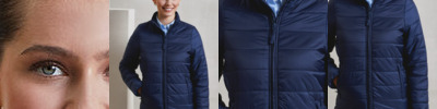 Women’s padded zip-through jacket with horizontal stitching to form baffles, ensuring an even distribution of insulation. Covered zip with chin guard and zip guard to the inner. Styled with a cadet collar. Two welt jet zipped side pockets with a single open pocket to the inner for handy storage. Elasticated cuffs measuring one inch wide. Full embroidery access to the entire jacket through an internal zip in the lining. Lightweight and folds downs easily into its own stuff sack. Made with 100% certified recycled fabrics.